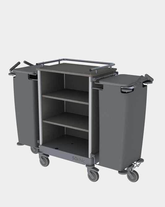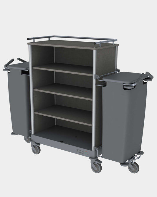 I carrelli Cleaning offrono una soluzione pratica e funzionale per la pulizia delle strutture alberghiere, combinando design ergonomico e versatilità. Disponibili sia nella versione tradizionale che con sistema preimpregnato, garantiscono una pulizia efficiente e adatta a diverse esigenze operative. Questa linea di carrelli è pensata per chi cerca un equilibrio tra prestazioni elevate, sicurezza e semplicità d'uso, ottimizzando i tempi e le risorse nelle operazioni quotidiane.