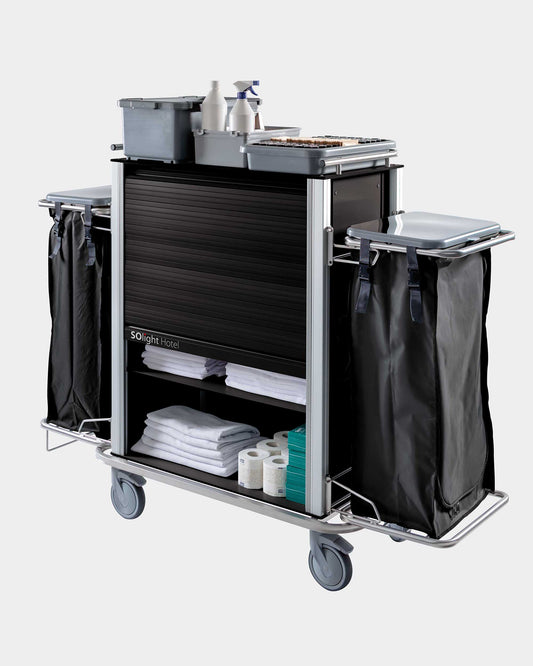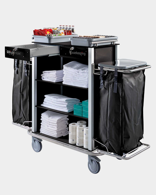La raffinatezza dei carrelli per hotel SOlight è intimamente legata alla sobrietà di linee, colori e forme, permettendo una perfetta integrazione con qualsiasi tipo di arredamento.