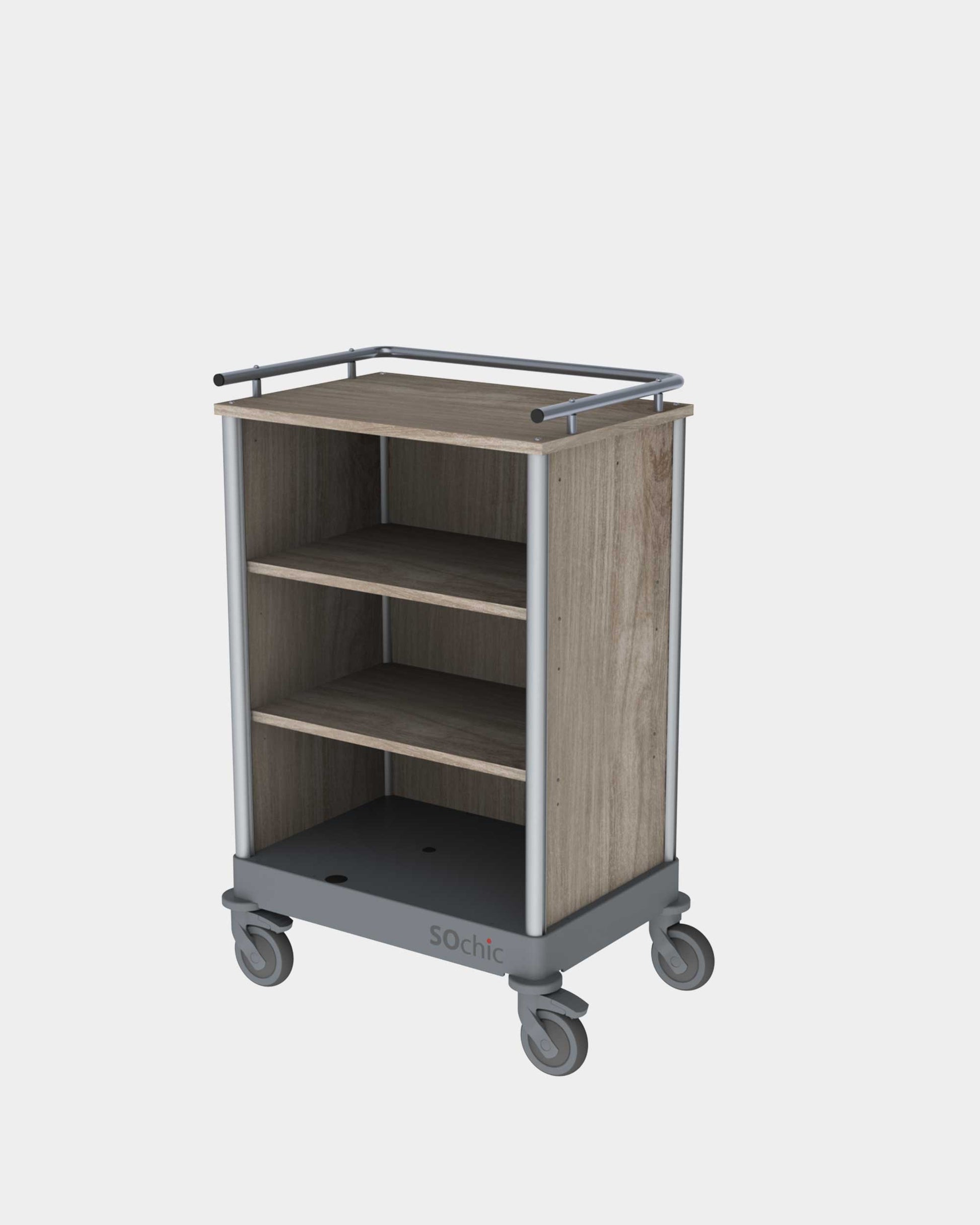 The SOchic 1.1 Easy is the most essential model of the SOchic line, characterized by a "medium" base and low upright, with two practical internal shelves. This cart is known for its space saving efficiency, cost effectiveness and build quality.