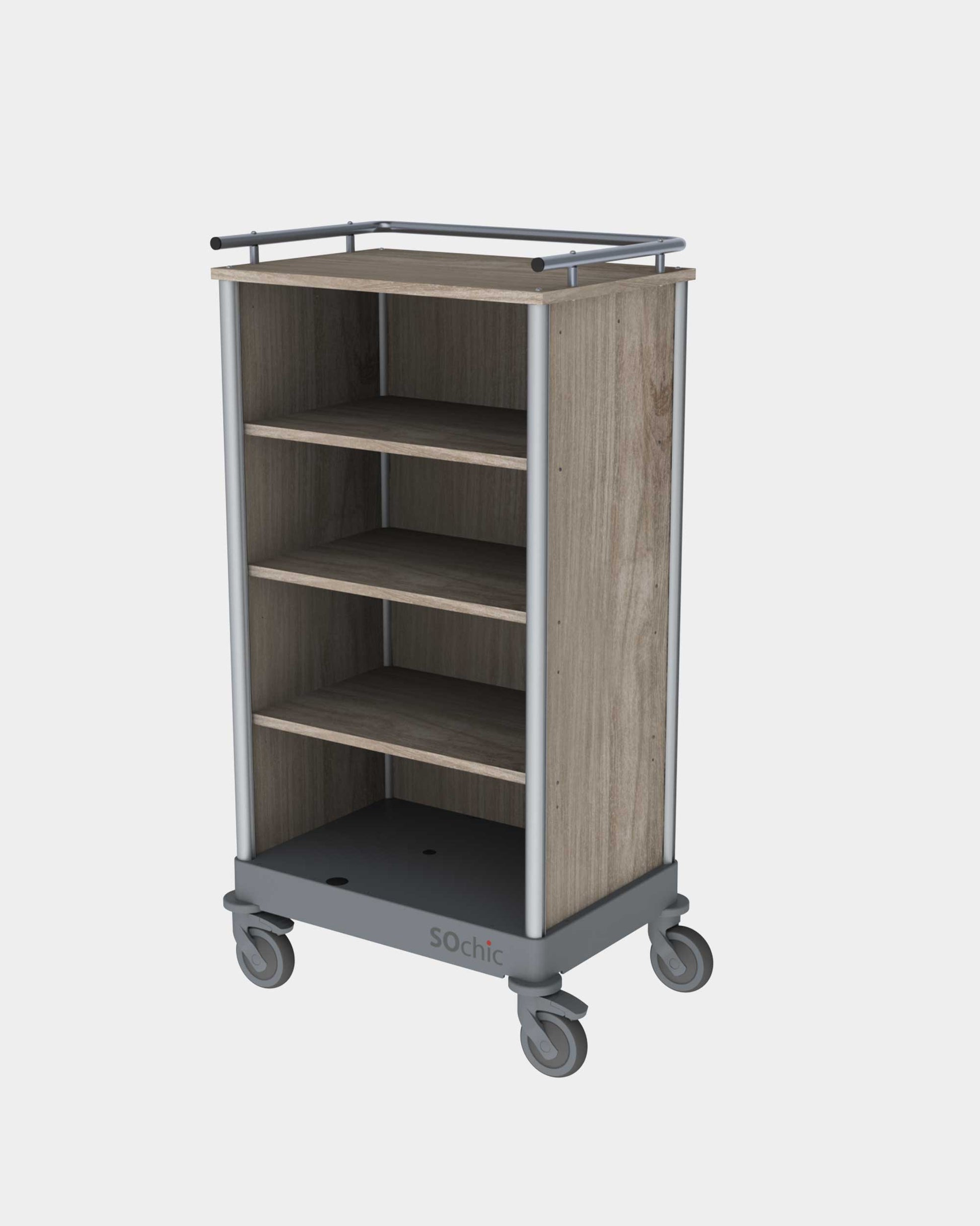 The SOchic 2.1 Easy is the tallest, narrowest and simplest model of the SOchic line, characterized by a "medium" base, high upright and three shelves. This trolley offers a complete and versatile solution to meet a variety of hospitality storage needs.