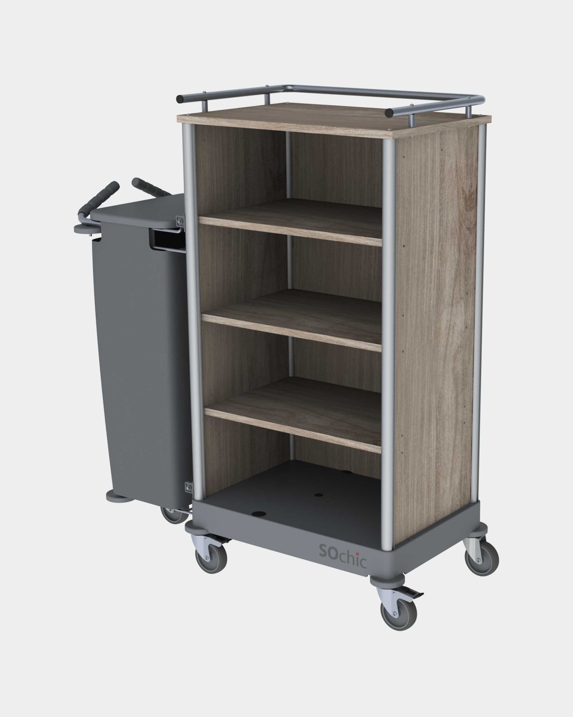 Il SObasic 2.1 Easy Mono è il modello più alto e stretto della linea SObasic, caratterizzato da una base "medium", ruote in metallo ø 100 mm, montante alto e un reggisacco laterale. Questo carrello offre una soluzione funzionale e di qualità, ottimizzata per spazi compatti nell'ambito dell'ospitalità.