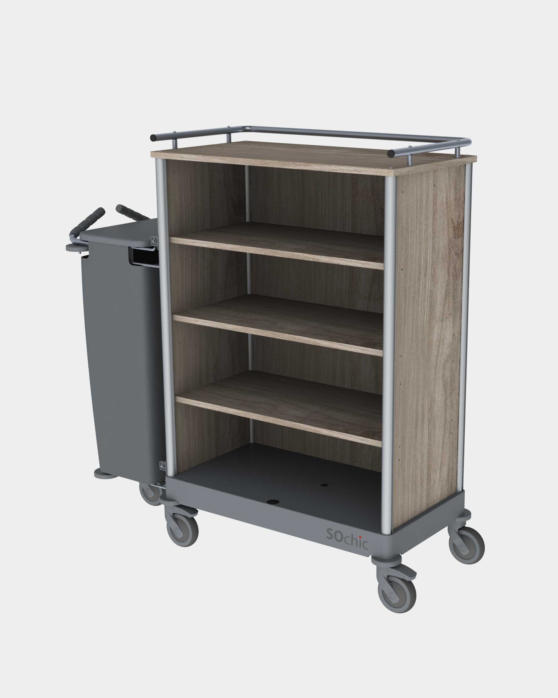 With a choice of two charming color variations: wood effect and texture effect, the SOchic 2 Easy combines style and efficiency, offering a complete solution for improving the organization and presentation of objects in various situations. Thanks to its generous capacity and reliable performance, it represents an ideal choice for those looking for a complete and functional hospitality trolley.