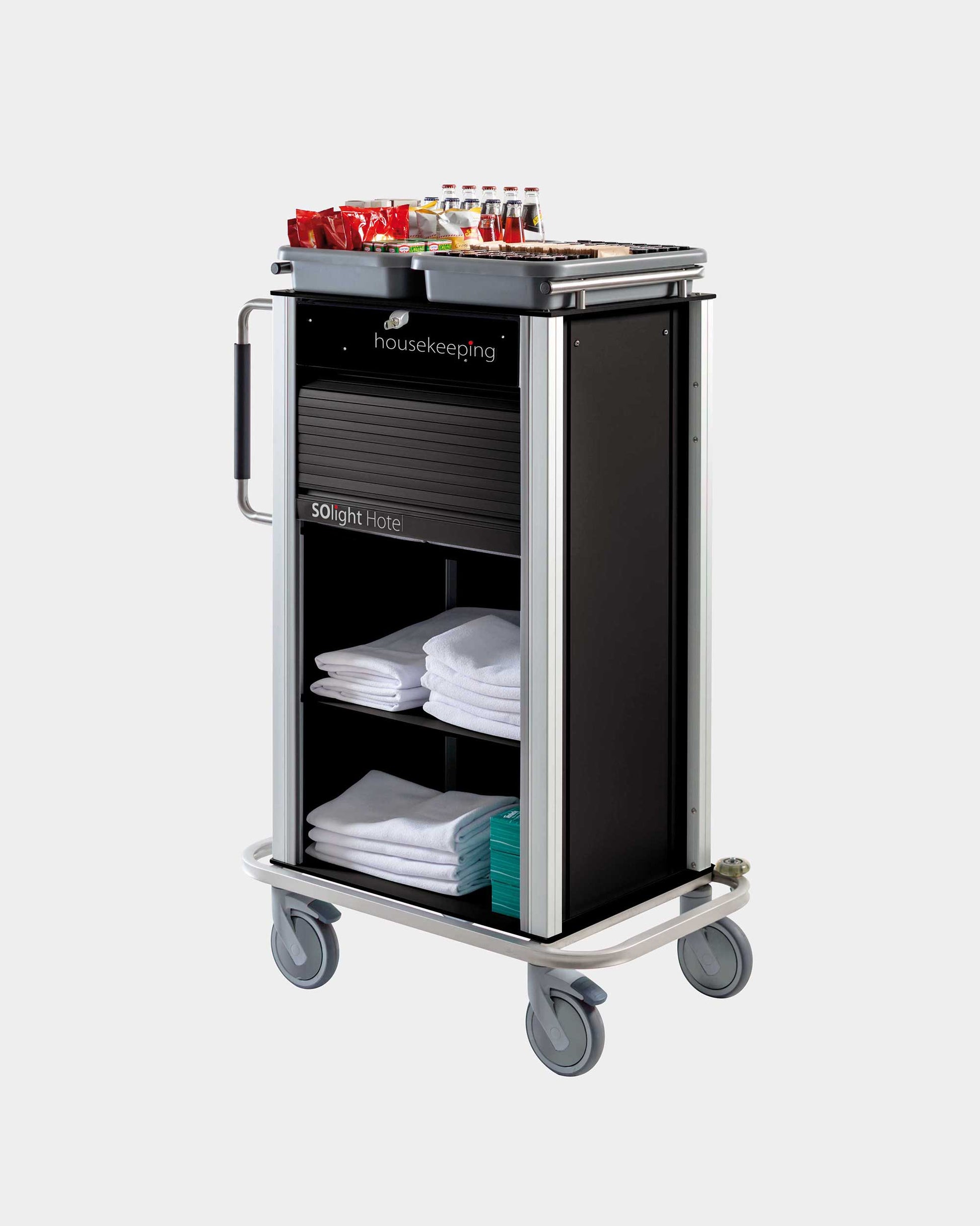 SOlight 1 Loop Pro can be completely closed to hide its contents from view. Equipped with a front drawer shutter according to the needs of the hotel.