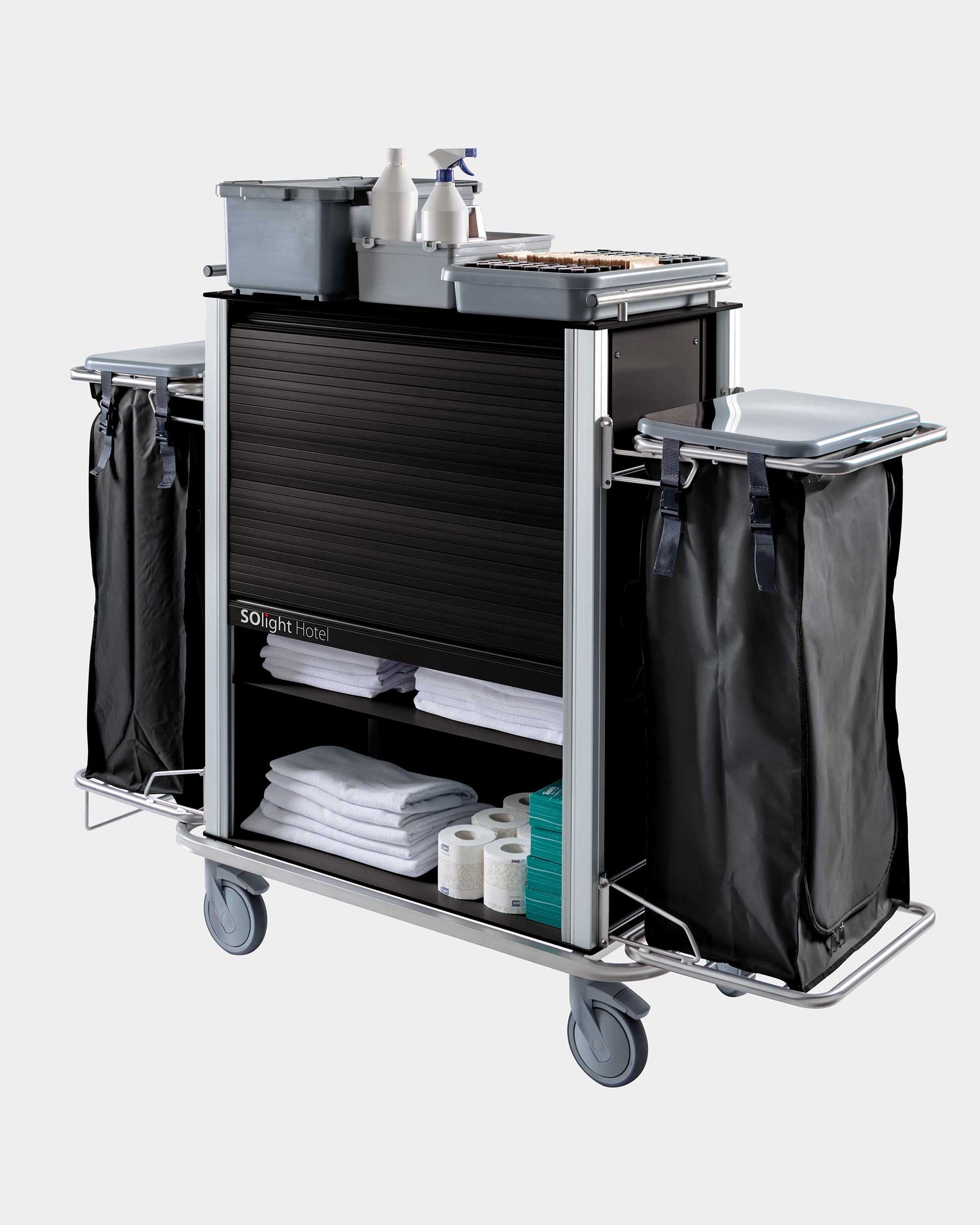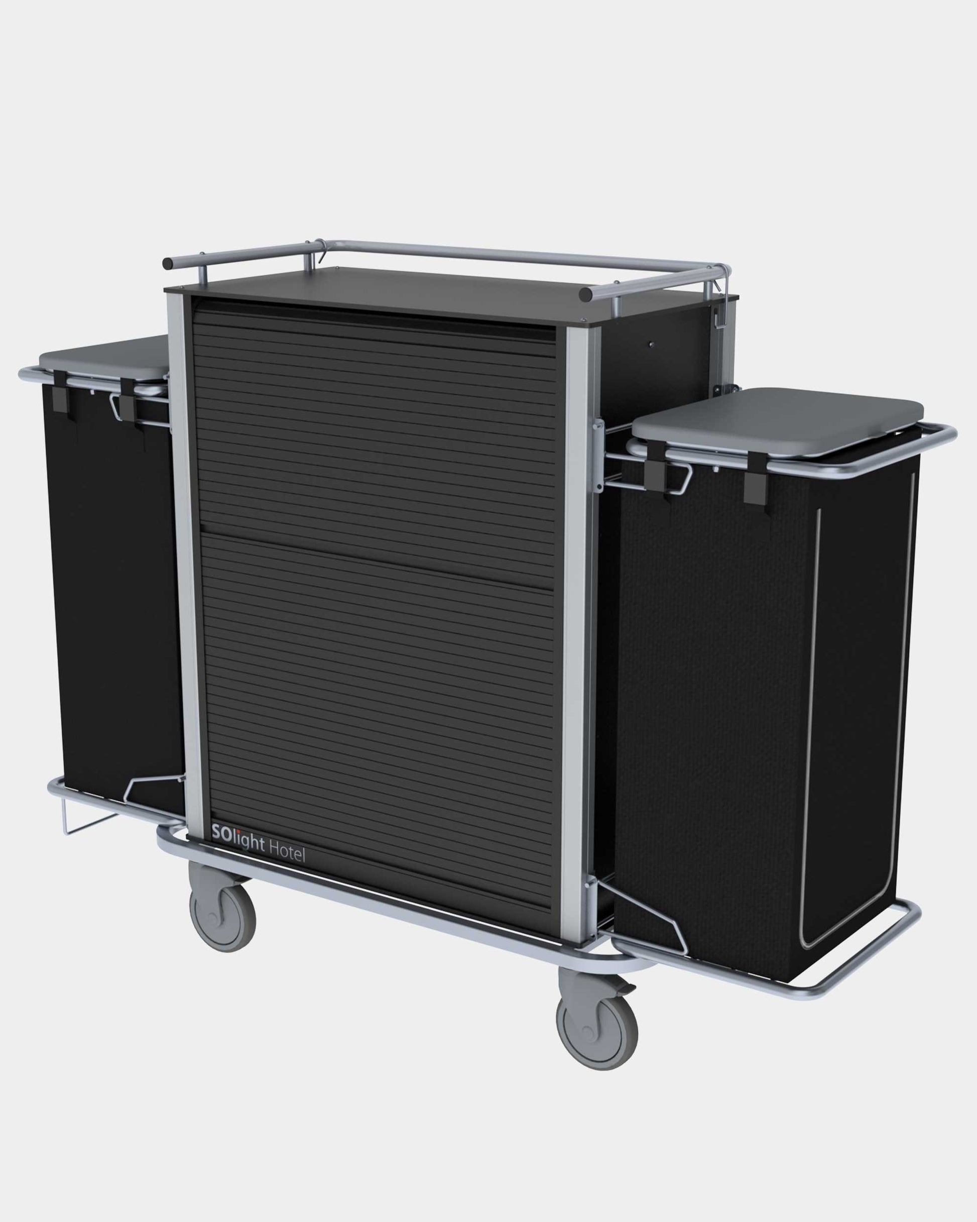SOlight 2 Loop can be completely closed to hide its contents from view. It is organized with one or two bag holders and can be customized with the numerous accessories from the SOlight range according to the needs of the hotel: it is the flagship product of the range.
