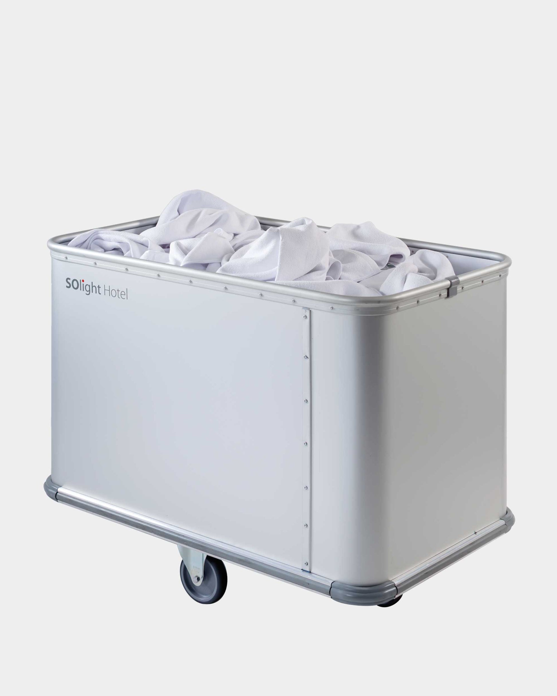 Spring è un carrello in alluminio per la raccolta della biancheria.