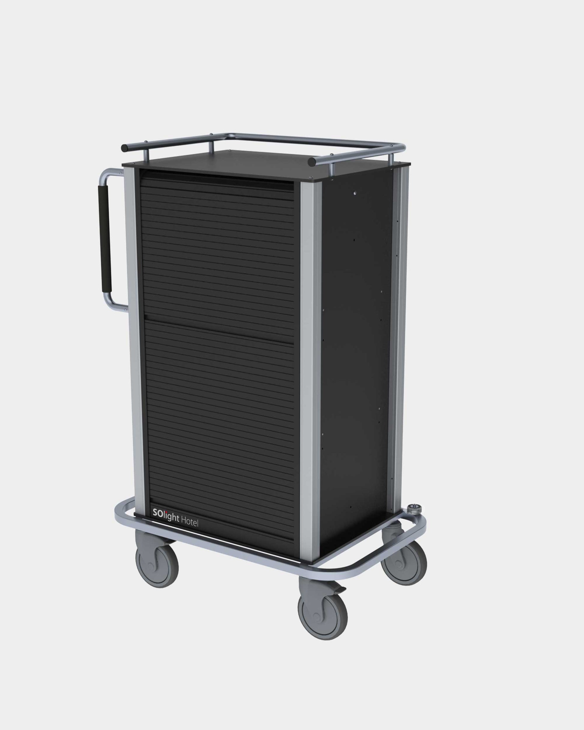 SOlight 1 Loop può essere completamente chiuso per nascondere alla vista il suo contenuto. Elegante, funzionale, discreto e dal curatissimo design è il più compatto dei carrelli dotati di serrandina scorrevole. Di dimensioni contenute si muove agevolmente in ambienti con spazi ridotti.